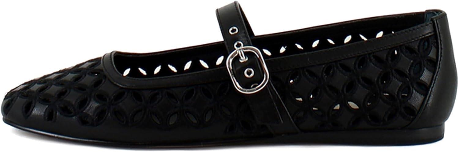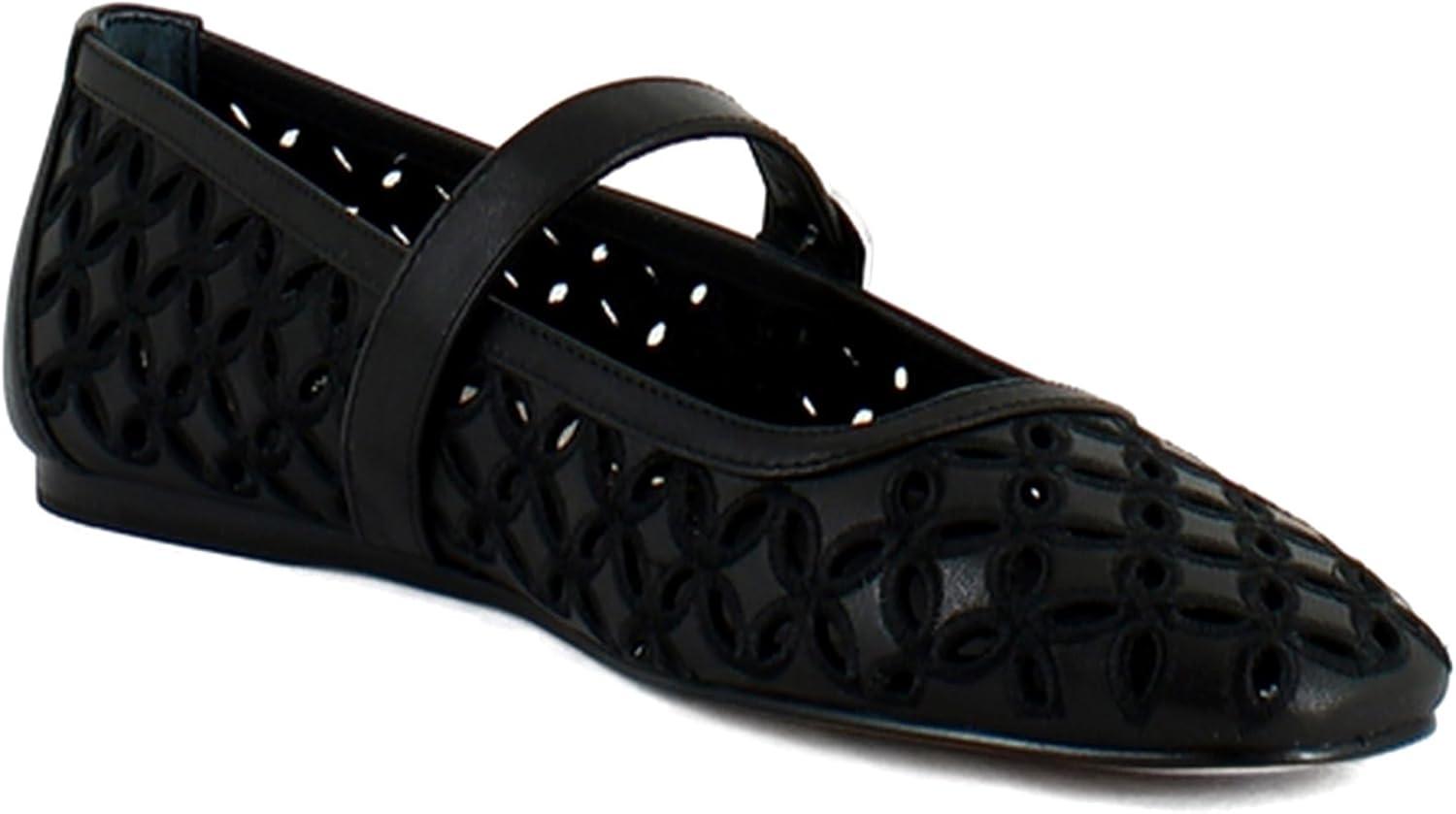 Dolce Vita Women’s Rodni Eyelet Perf Ballet Flat(Black Leather)
